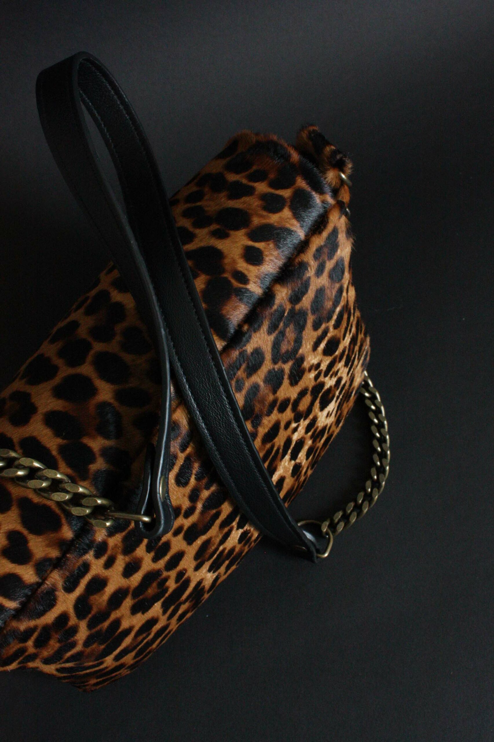 - Le sac trotteur qui allie style et contenance ! Ultra stylé, il embarque les essentiels de votre quotidien et même plus… vous pouvez même y glisser un roman ou un guide de voyage ! Le magnifique cuir léopard poilu fait de ce sac THE accessoire de votre garde-robe…