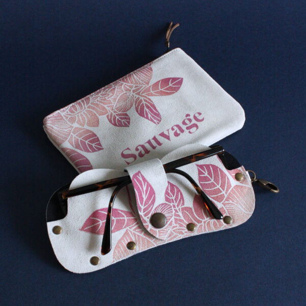 Cet accessoire est issu de la collection Sauvage : chaque étui à lunette est patiemment imprimé à la main avec la technique de l’estampe.