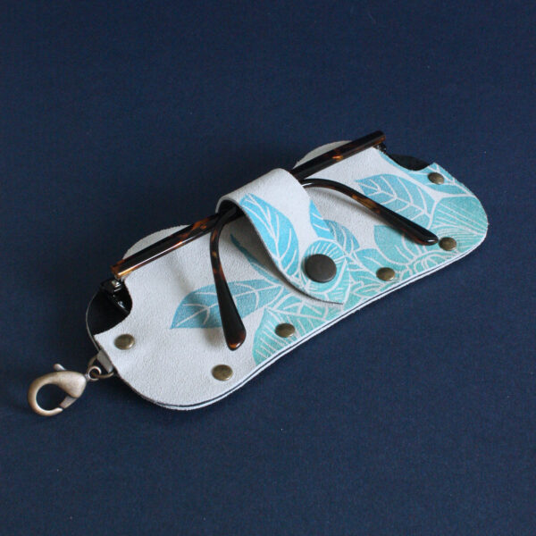 Cet accessoire est issu de la collection Sauvage : chaque étui à lunette est patiemment imprimé à la main avec la technique de l’estampe.