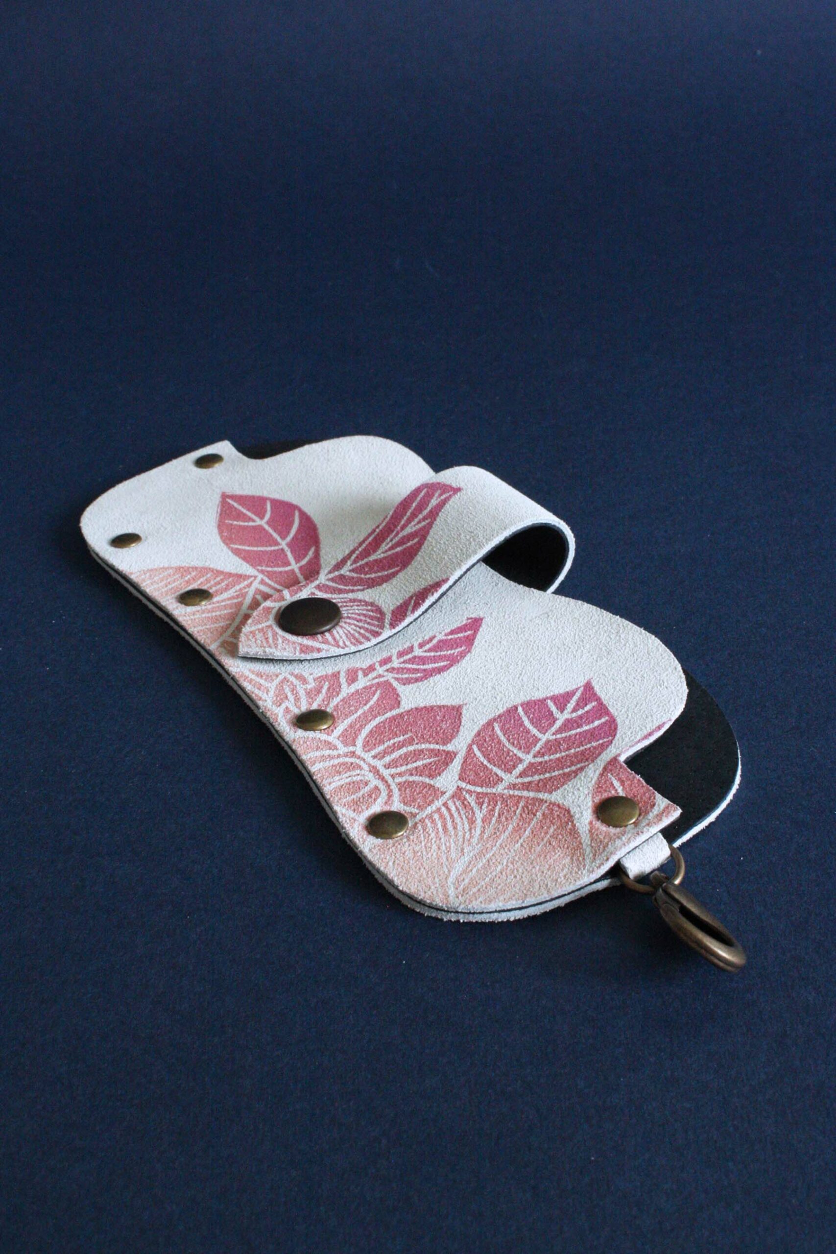 Cet accessoire est issu de la collection Sauvage : avant fabrication, le cuir est patiemment imprimé à la main dans mon atelier.