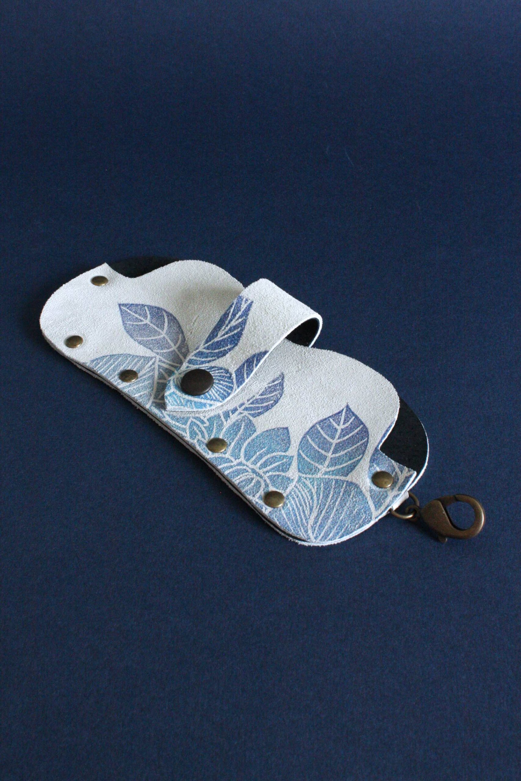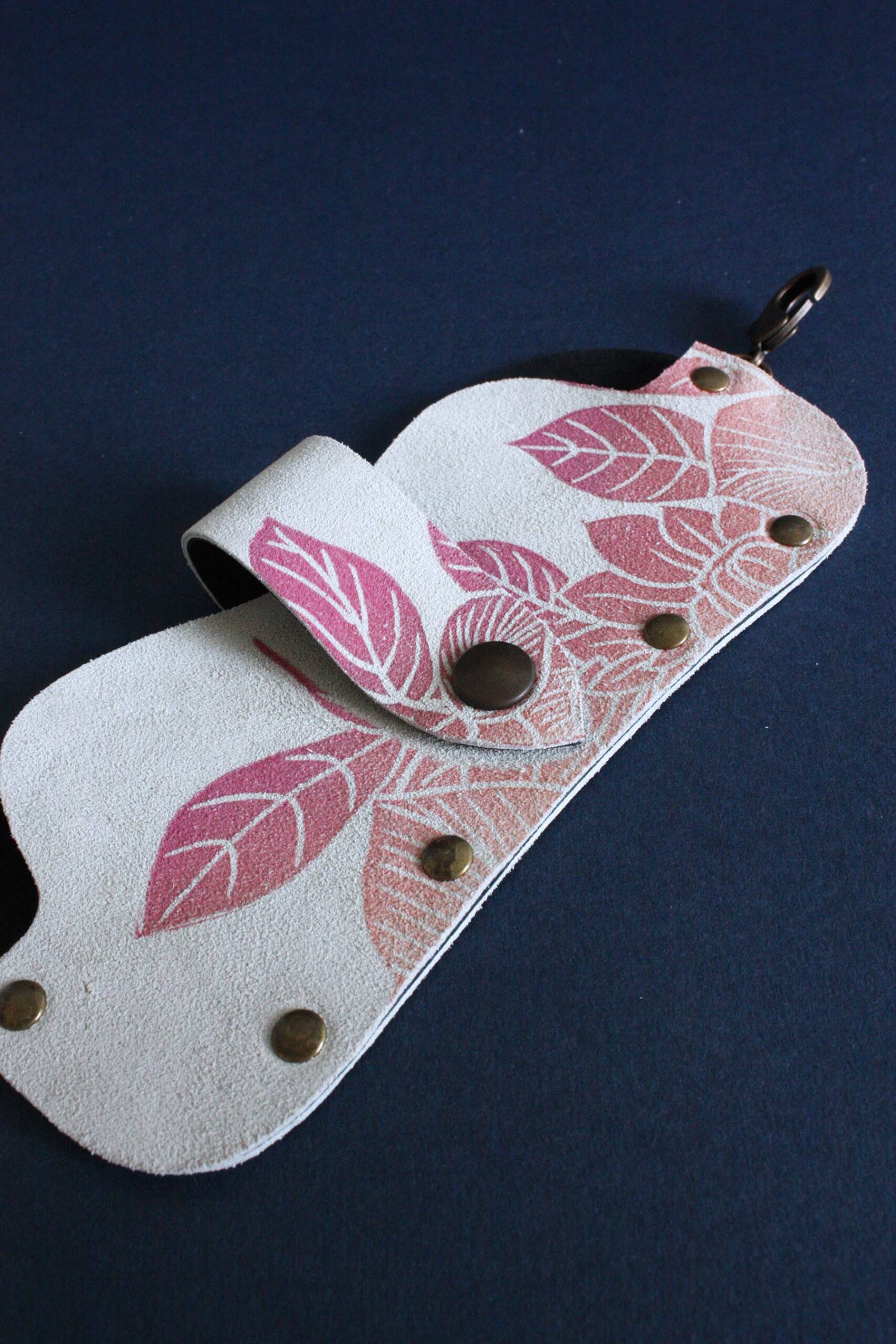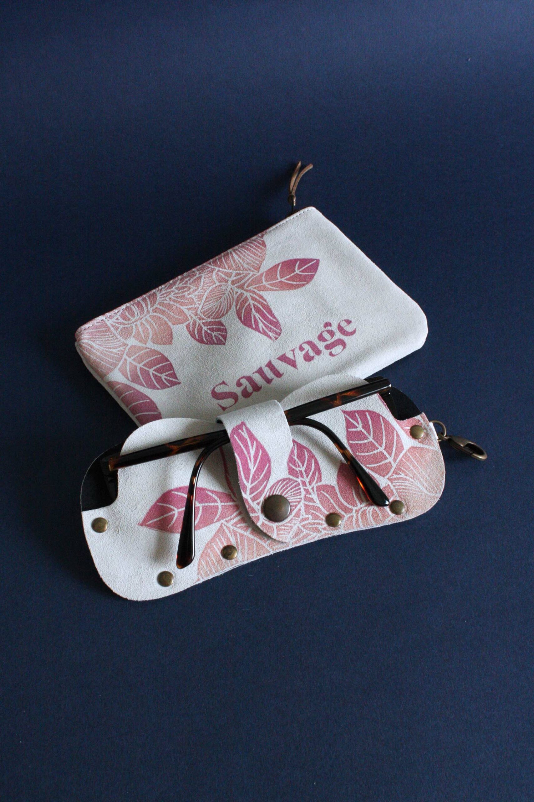 Cet accessoire est issu de la collection Sauvage : avant fabrication, le cuir est patiemment imprimé à la main dans mon atelier.