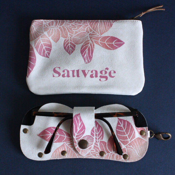 Cet accessoire est issu de la collection Sauvage : chaque étui à lunette est patiemment imprimé à la main avec la technique de l’estampe.