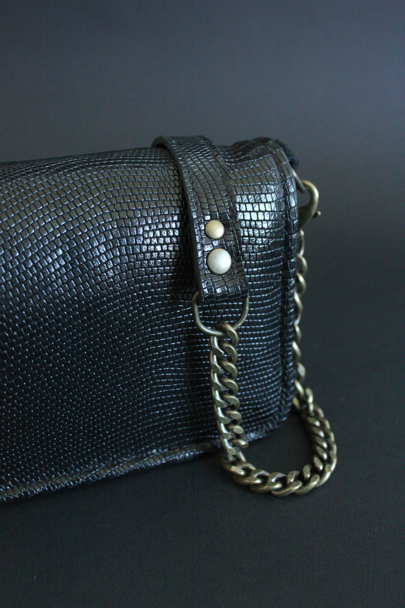 Sac Mini Venus en cuir noir façon serpent