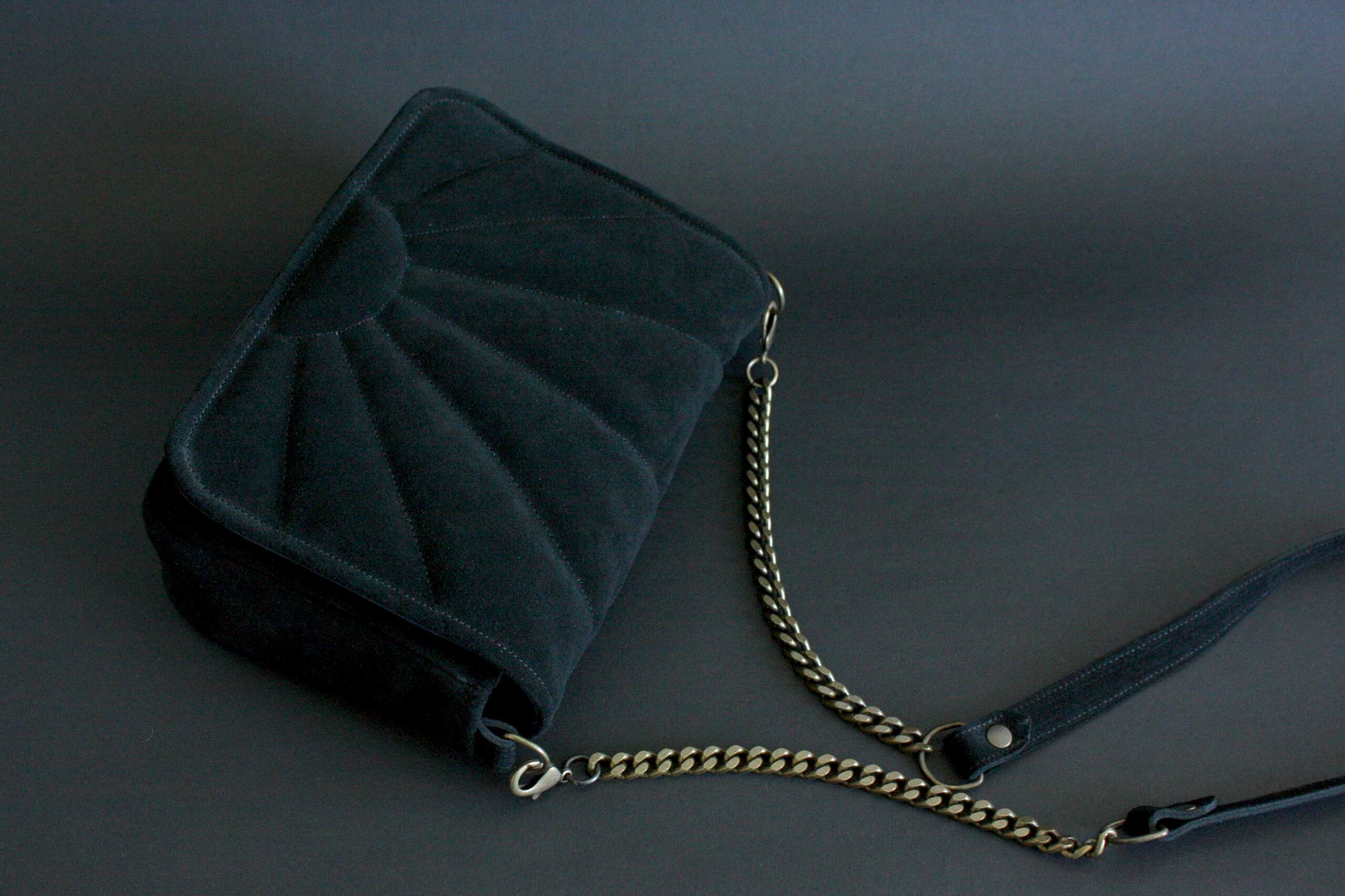 Entièrement imaginé et fabriqué dans mon atelier, Joan est le sac signature de l’atelier avec son matelassage inspiré du soleil couchant. Avec son matelassage inspiré du soleil couchant. Il est entièrement doublé de coton sergé, s’organise en deux compartiments et se ferme par rabat aimanté.